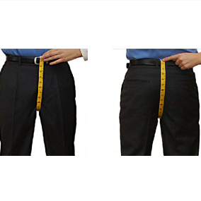 Measure around your waist at the level where you would normally wear your pant's belt. With the tape measure snug around your waist, relax, and take the measurement. Don't be alarmed if this measuremen seems larger than expected; off-the-rack pants are normally labeled as being smaller than what they really are.