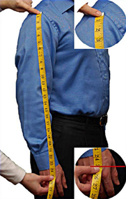 Measure from the end of the right shoulder to the end of the left shoulder. We define the "End of the Shoulder" as where the horizontal plane of the shoulder intersects thevertical plane of the arm